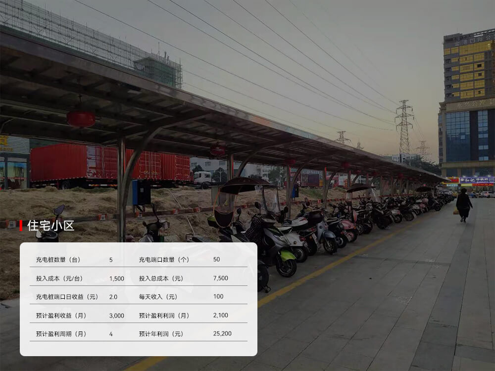 在住宅密集區域,可以建設在市政道路,為周邊用戶提供安全充電設備,及時電具備充滿電后自動斷電的功能,有效降低過度充電對電池產生的損害,保護電池使用壽命,為車主提供集中充電,提高了用戶充電體驗的同時,管理難度也減小。