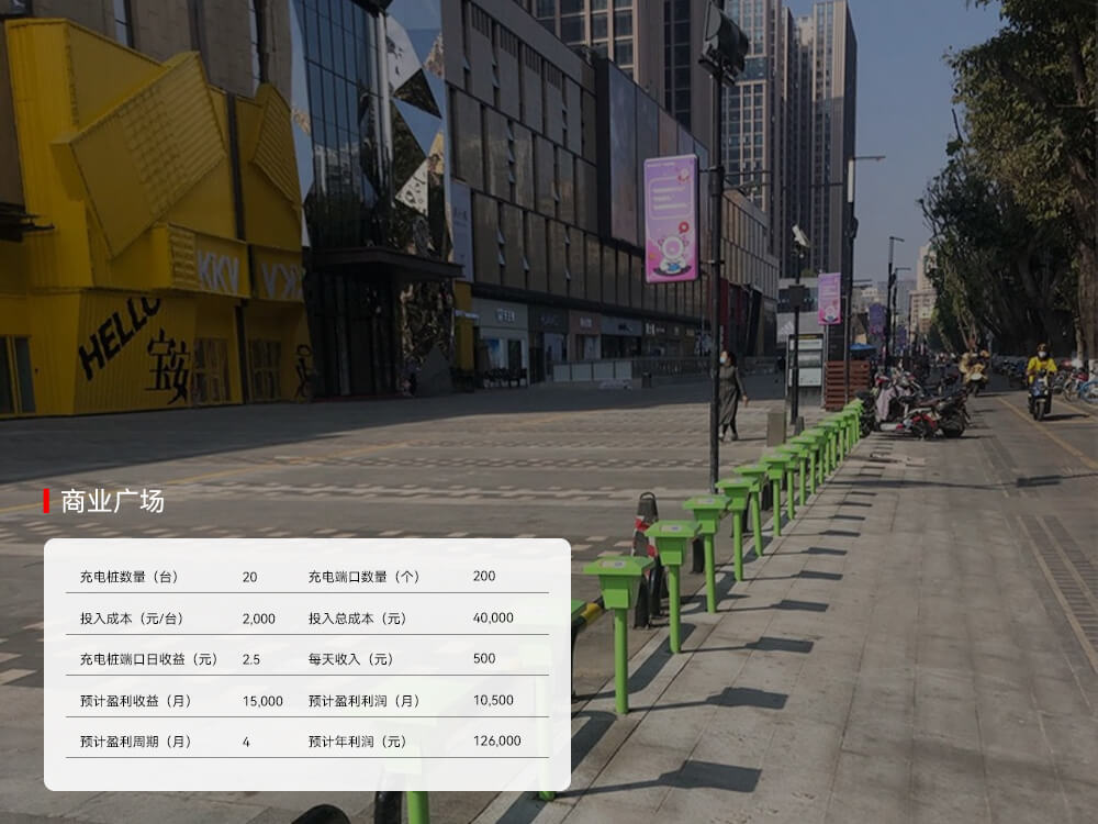大型的購物商城也是電瓶車聚集地之一,有附近的消費者,也有商場的員工,在商業廣場安裝及時電充電樁,提高商業廣場配套設施。及時電電動自行車充電樁具有過載保護、空載保護、保安全節電、過充保護、充滿自動斷電等功能。